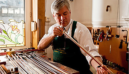 Pierre Guillaume makes bows for violins, violas and cellos with frogs mounted in silver and gold. Pierre Guillaume is a member of the International Society of violin and bow makers.
